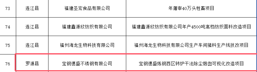 其中,包含有寶鋼德盛不銹鋼有限公司的寶鋼德盛煉鋼西區(qū)轉(zhuǎn)爐干法除塵煙囪可視化改造項(xiàng)目。