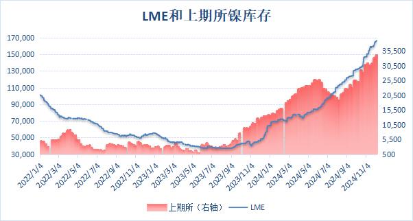 上期所公布的數據顯示,12月6日當周,滬鎳庫存繼續(xù)回升,周度庫存增加3.26%至34,090噸,刷新逾四年最高位。